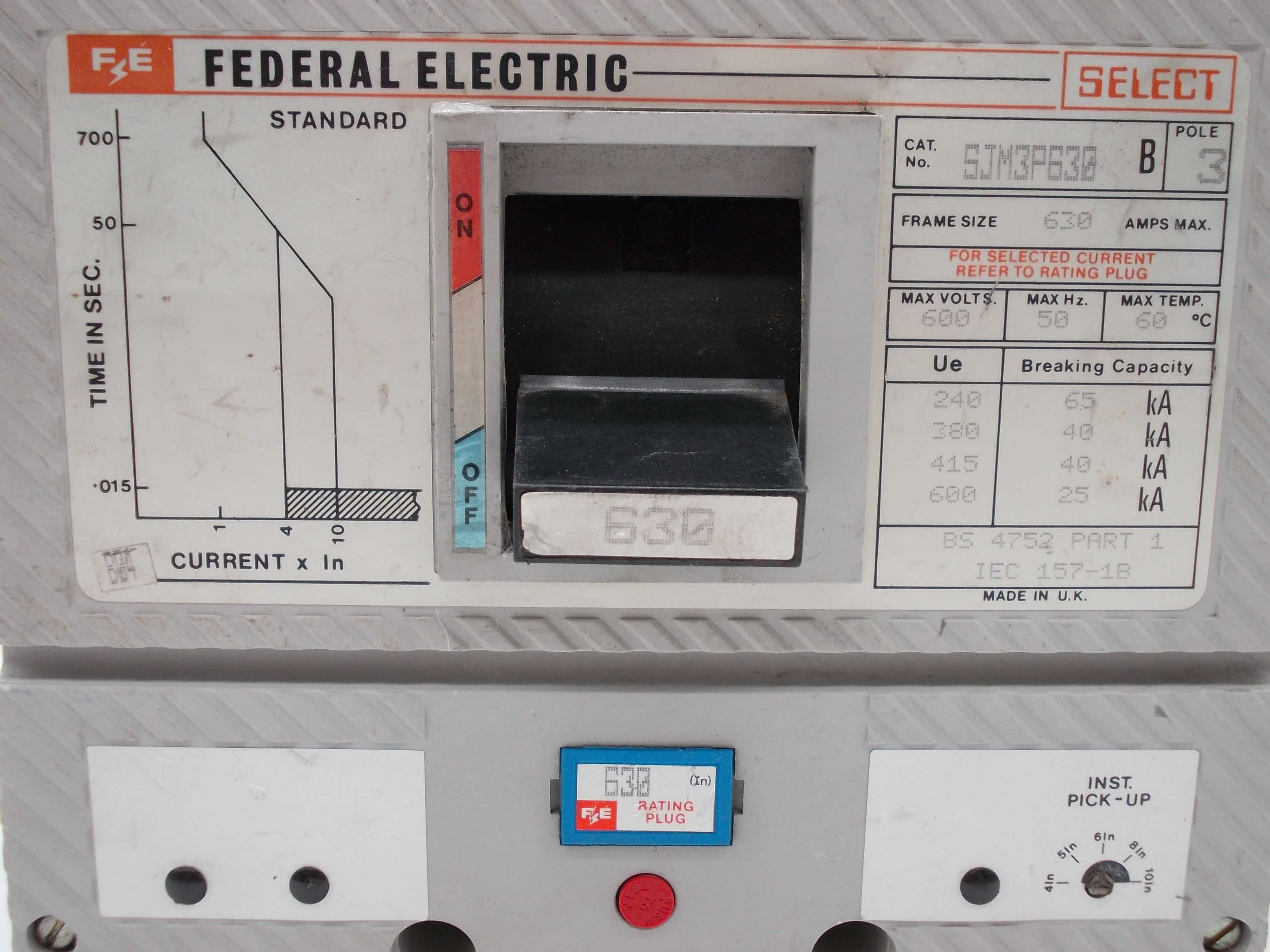 Used But Good Condition. Federal Electric Select Moulded Case Circuit Breaker.