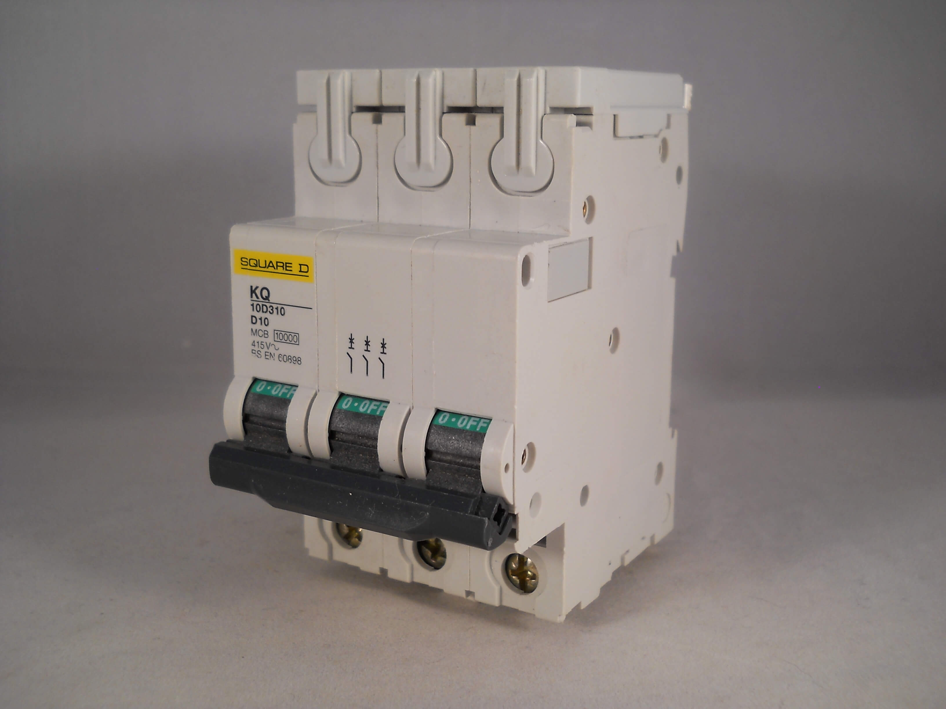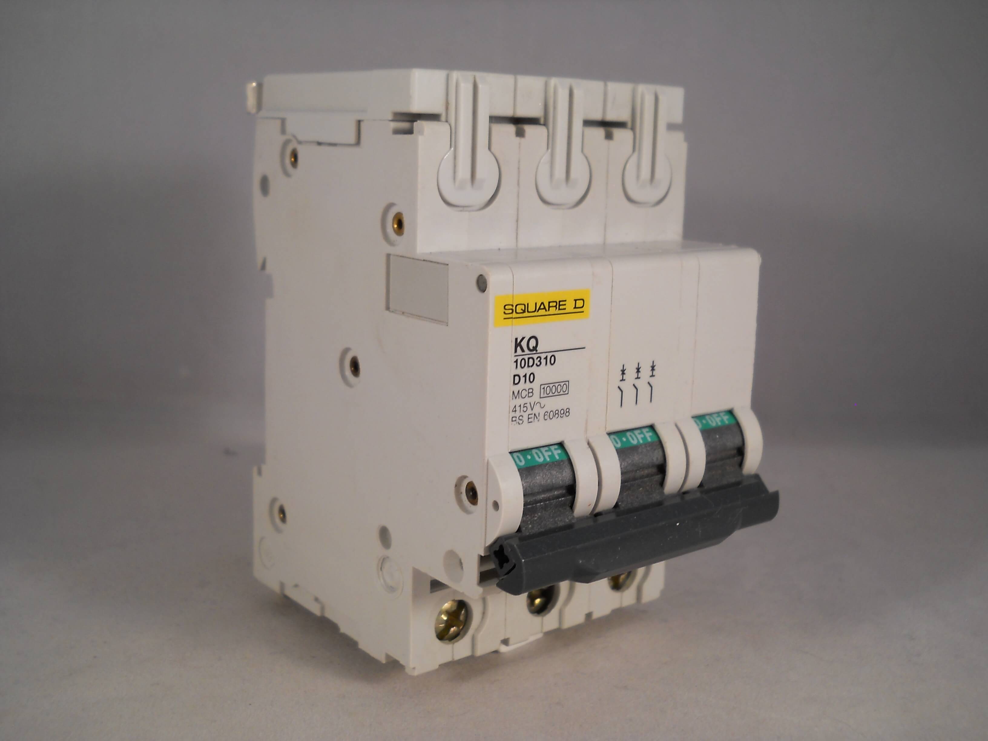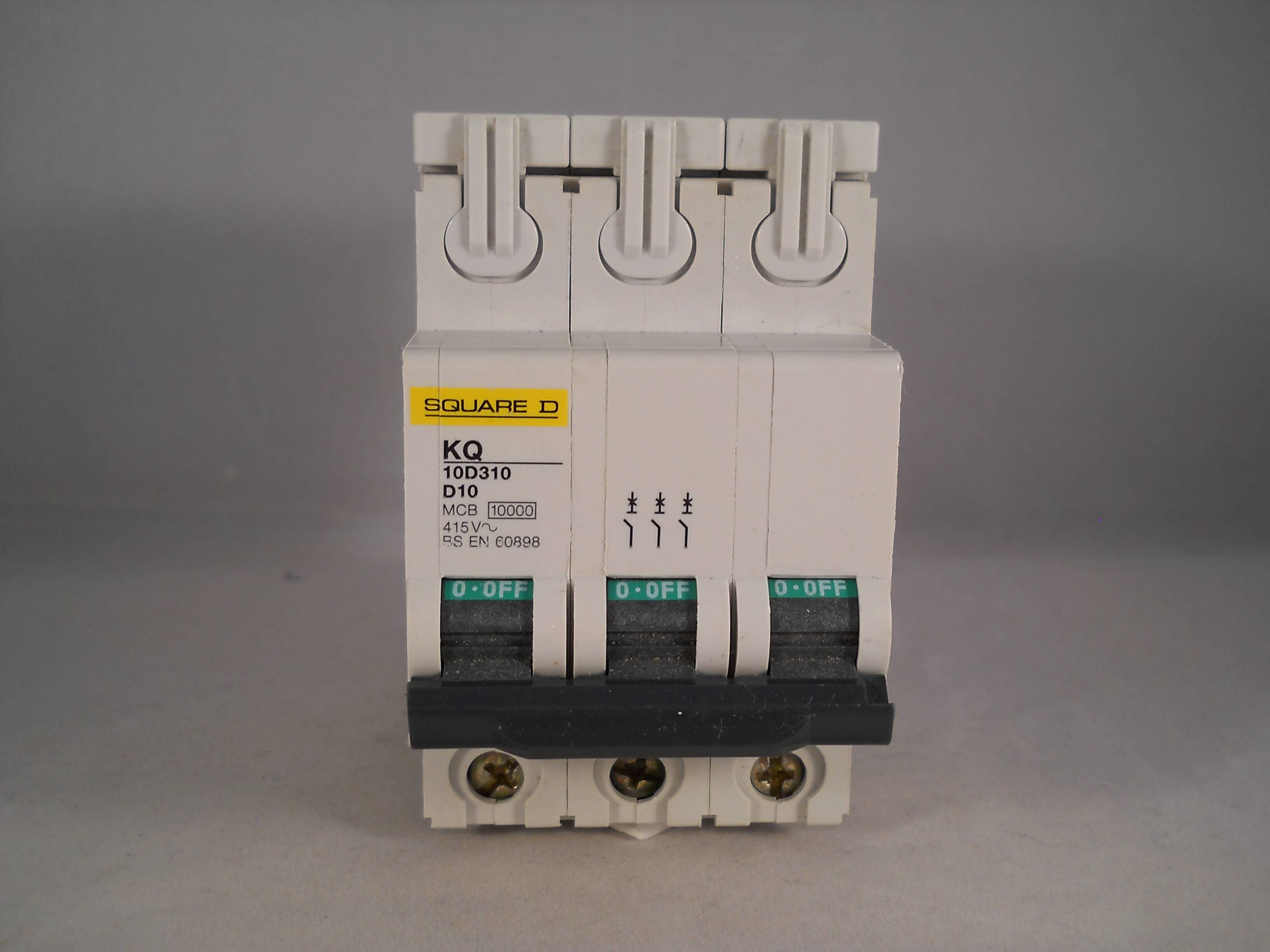 Square D MCB 10 Amp Triple Pole 3 Phase Breaker Type D 10A Loadcentre KQ10D310